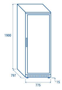 This 600 liters ABS cabinet model represents the perfect combination between high performance and affordable cost. The CRXG 6 in a stainless-steel finish and internally thermoformed, fitted with a digital thermostat, internal vertical LED light, opening door and high-temperature alarm, self-closing and reversible door, lock and main switch, 5 adjustable shelves, 2 adjustable feet + 2 rollers at the back, and suitable for GN 2/1 pans.
