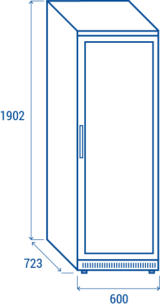 400 liters glass door ABS freezer cabinet in stainless steel finish and internally thermoformed, fitted with a digital thermostat, lock, external handle along door profile, inner double vertical LED lights, 6 fixed evaporator shelves and 2 adjustable feet + 2 rollers at the back.