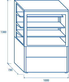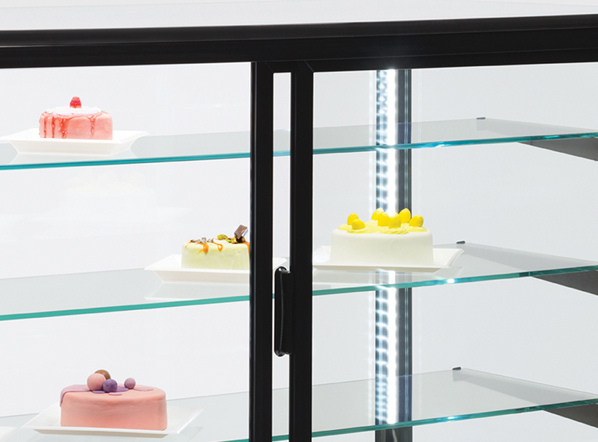 This model has been equipped with 3 glass shelves and LED lighting to give an excellent display, and sliding doors to the rear to allow easy loading and serving during the day-by-day operations.