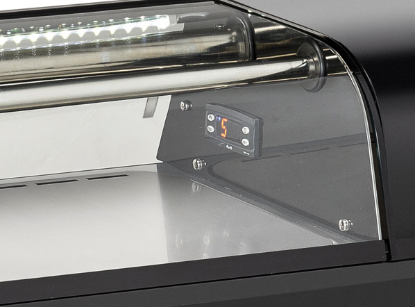 The RS 80 model has been designed to give the greatest possible attention to your sushi or tapas. This refrigerated showcase is fitted with curved tempered double glass with hinge, sliding doors high resistance and interior LED lights with independent switch.