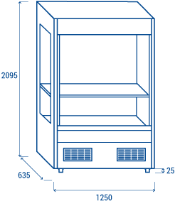 The VS 12 model has been designed to be placed behind the delicatessen counter in supermarkets. With 1200mm width, hanging meat bar, 1 adjustable shelf, interior LED lights with independent switch and night-blind for optimal energy conservation during nights, this wall showcase has been conceived in order to give the retailer the maximum operating comfort and low energy consumption.