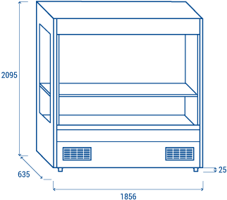 The VS 18 model has been designed to be placed behind the delicatessen counter in supermarkets. With 1800mm width, hanging meat bar, 1 adjustable shelf, interior LED lights with independent switch and night-blind for optimal energy conservation during nights, this wall showcase has been conceived in order to give the retailer the maximum operating comfort and low energy consumption. The showcase has a wide range of customisation possibilities: a wide choice of finishes, RAL, stainless steel and laminate colours; two different depth and solid or panoramic ends to better suit where it will be placed.