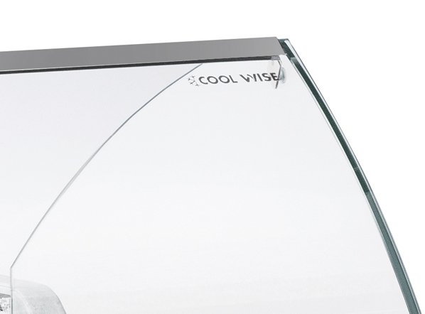 This model, thanks to its reduced visual impact and the curved glass, gives the displayed product maximum visibility and protection.