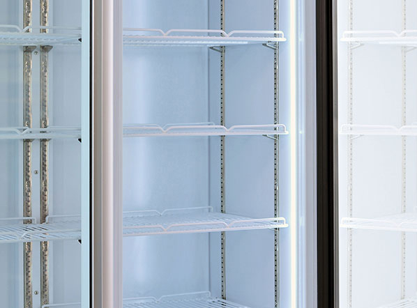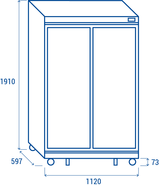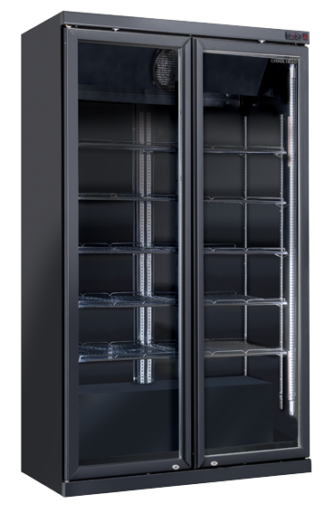 The DC 1050B model has been designed to be a modern, reliable and versatile drink cooler. It is ideal to display and maintain any kind of bottles and cans at the right temperature. It is also customizable with promotional messages. With a capacity of 805L, finished in black and with 2 hinged doors, this product is fitted with 10 adjustable shelves, digital thermostat, lock, self-closing door, inner LED light with independent switch, 4 wheels for easy positioning + 2 anti-tilted feet and anti-condensation double layer glass.
