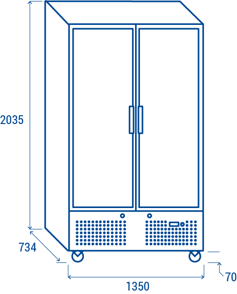 The DC 1250W model has been designed to be a modern, reliable and versatile drink cooler. It is ideal to display and maintain any kind of bottles and cans at the right temperature. It is also customizable with promotional messages. With a capacity of 1055L, finished in white and with 2 hinged doors, this product is fitted with 10 adjustable shelves, digital thermostat, lock, self-closing door, triple vertical inner LED light with independent switch. To complete the high-end features list, it comes with R290 eco-friendly and 4 wheels for easy positioning.