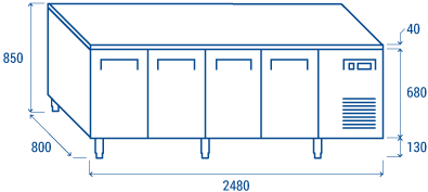 Designed to create a reliable piece of refrigeration equipment for pastries and bakeries, this product seeks to offer the perfect storage solution for both ingredients and semi-finished and finished products. The PA 4100 model is the perfect combination of efficiency, 800 mm of depth, 4 doors, 2 adjustable shelf 600x400mm on each door, and attention to the environmental sustainability, equipped with R290 natural gas, 70 mm insulation foaming on each side, doors with internal embossing for better sealing and a self-closing door to avoid energy waste.