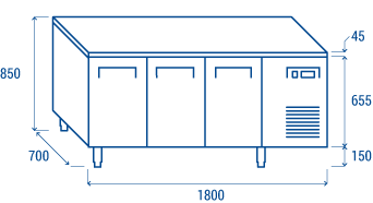With a modern appearance, a new door design, rounded edges at the top and a digital display, the QR 3100 model is the perfect combination of efficiency and reliability. It has 700 mm of deep, 3 doors or drawers optionally available and 2 adjustable shelves GN1/1 on each door. It was designed with focus on environmental sustainability, being equipped with R290 natural gas, 60 mm insulation foaming on each side, doors with internal embossing for better sealing and a self-closing door to avoid energy waste. To complete the high-end features list, it comes with height-adjustable feet (from 145mm to 185mm) and an engine with cassette system for the best after-sales servicing.