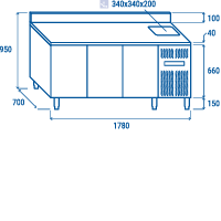 Highly practical solution that integrates a stainless-steel sink (340x340x200mm) with a refrigerated reliable counter, the RC 3200LV model is the perfect combination of efficiency and space optimization with 700 mm of depth, 3 doors, a 100 mm splash back, digital thermostat, R290 natural gas and height-adjustable feet (from 135mm to 185mm).