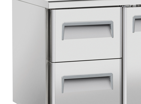 With a modern appearance, a new door design, rounded edges at the top, 100 mm splash back and a digital display, the SR 2200 model is the perfect combination of efficiency and reliability. It has 600 mm of depth, 2 doors or drawers optionally available and 2 adjustable shelves 325x410mm on each door. It was designed with focus on environmental sustainability, being equipped with R290 natural gas, 60 mm insulation foaming on each side, doors with internal embossing for better sealing and a self-closing door to avoid energy waste. To complete the high-end features list, it comes with height-adjustable feet (from 145mm to 185mm) and self closing doors.