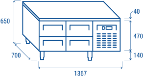 Designed to create a comfortable and efficient work station, that allows to storage fresh food in the refrigerated zone at the bottom and cook it with free-standing equipment on the top. The U-GN 2140 model is the perfect combination of efficiency and modularity in a professional kitchen with 650 mm height, 4 sliding drawers GN1/1 suitable for pans 100mm depth, digital thermostat and height-adjustable feet (from 120mm to 180mm).