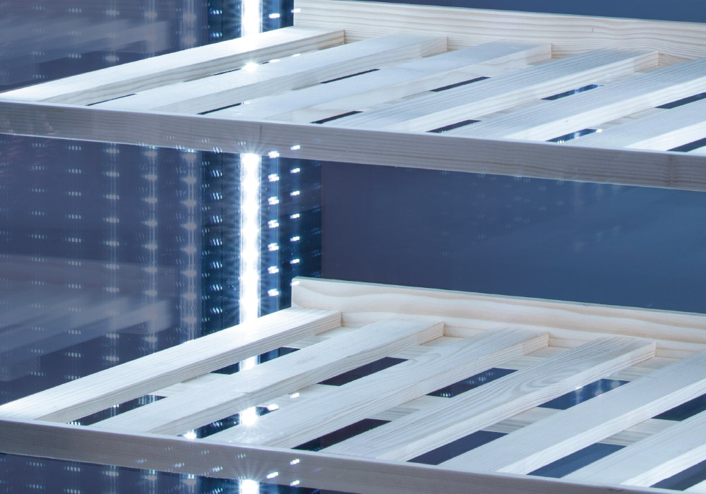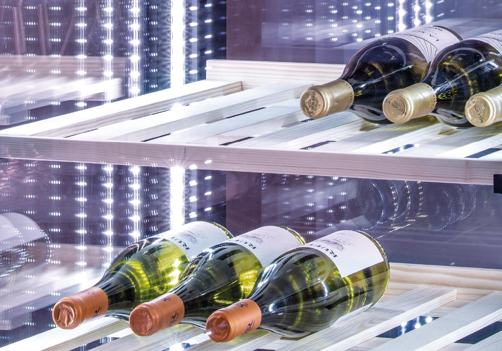 The RV 404BL wine showcase catches the visitor’s eyes thanks to its refinement, and at the same time is able to adapt to any context thanks to its discretion. This model with a 700mm single door has been designed for smaller spaces, and to valorize the products displayed inside thanks to the 4 panoramic glasses with black screen printing, the 5 wooden shelves and the 4 internal LED lights. In energy class A, the RV 404BL is equipped with a digital thermostat with Wi-FI connection that allows to monitor and manage the internal temperature using a smartphone or tablet.