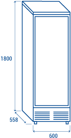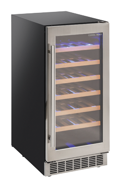 The CW 40 model is a modern mono temperature wine cellar suitable to contain up to 34 bottles and is designed and manufactured with the greatest care and attention in order to achieve advanced performances and high-quality standards. This wine cellar, also suitable for domestic use, is equipped with 6 wooden bottle holder racks, charcoal filter, blue LED digital display, interior blue LED light, a reversible door with a vertical cylindrical handle, a tinted glass door for wine protection and an opening door alarm.
