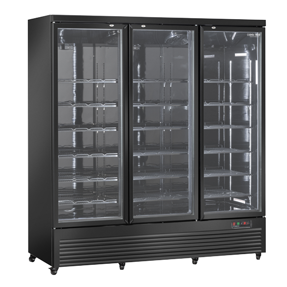 Un refrigerador vertical de aspecto impecable con triples puertas de cristal y 1550L de capacidad. Viene en color negro y con una luz LED vertical interior con interruptor independiente. Está equipado con una puerta de cristal con doble vidrio templado de seguridad, sistema de enfriamiento ventilado, 18 estantes ajustables, cerradura, puerta de cierre automático, 6 ruedas para facilitar la colocación y pantalla digital de termostato. El modelo RCG 1900B ha sido diseñado para ser utilizado de múltiples formas, garantizando siempre un correcto almacenamiento de las bebidas para una adecuada exposición y apreciación de los productos en su interior.