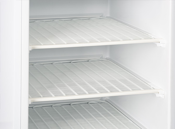 Armoire de congélation 200 litres en ABS, finition blanche et thermoformée à l’intérieur, équipée d’un thermostat digital, d’une serrure et d’un interrupteur général, d’une poignée le long du profil de la porte, de 2 étagères fixes pour l’évaporateur + une étagère amovible au milieu, de 2 pieds réglables assemblés + 2 roulettes à l’arrière. Les performances sont garanties par le gaz écologique R600a et la mousse d’isolation de 55 mm de chaque côté.