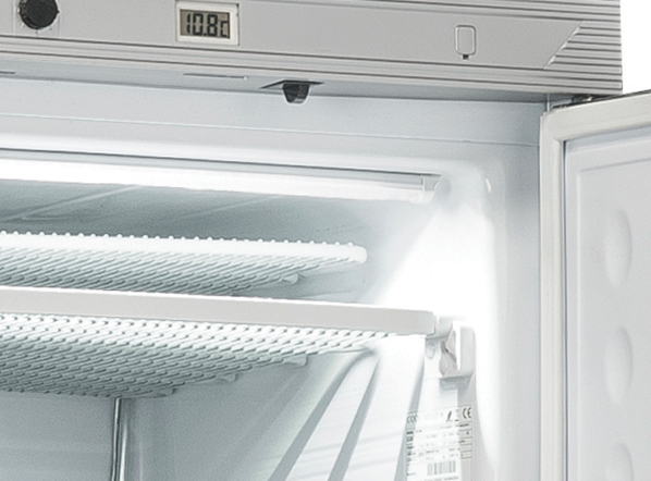 Armoire de congélation en ABS de 350 litres avec extérieur blanc et intérieur thermoformé, équipée d’un thermostat mécanique, d’un thermomètre digital, d’une lampe LED, d’une serrure, d’une poignée extérieure en aluminium, de 5 étagères réglables, de 2 pieds réglables + 2 roulettes arrière.