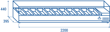 D’une largeur de 2200 mm, le VRX 22/38 est conçu pour accueillir 10 plateaux GN1/3 (non inclus), et est équipé d’un thermostat numérique et de pieds réglables. Des pieds hauts en acier inoxydable (140-210 mm) sont disponibles en option.