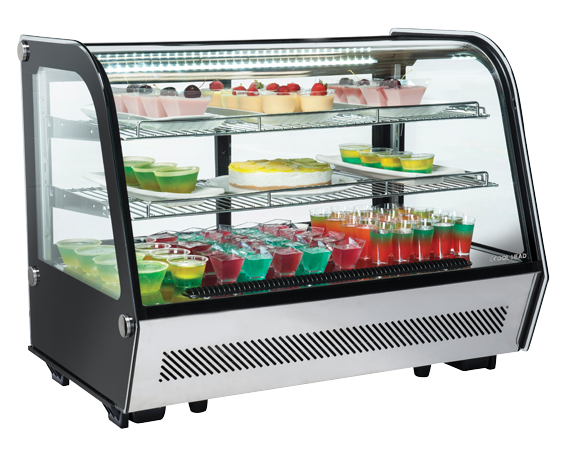 Questa vetrina refrigerata da banco in colore nero ed acciaio, equipaggiata con luci LED e vetro anticondensa a doppia curvatura, è stata ideata per l’esposizione di qualsiasi alimento meriti la giusta visibilità sul tuo bancone.