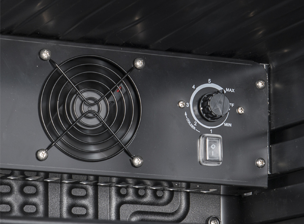 Con una capacità di 52L, di colore nero e con un’elegante maniglia in alluminio, questo prodotto è equipaggiato con luce LED, 2 ripiani regolabili, porta reversibile ed autochiudente e doppio vetro curvo temperato di sicurezza.