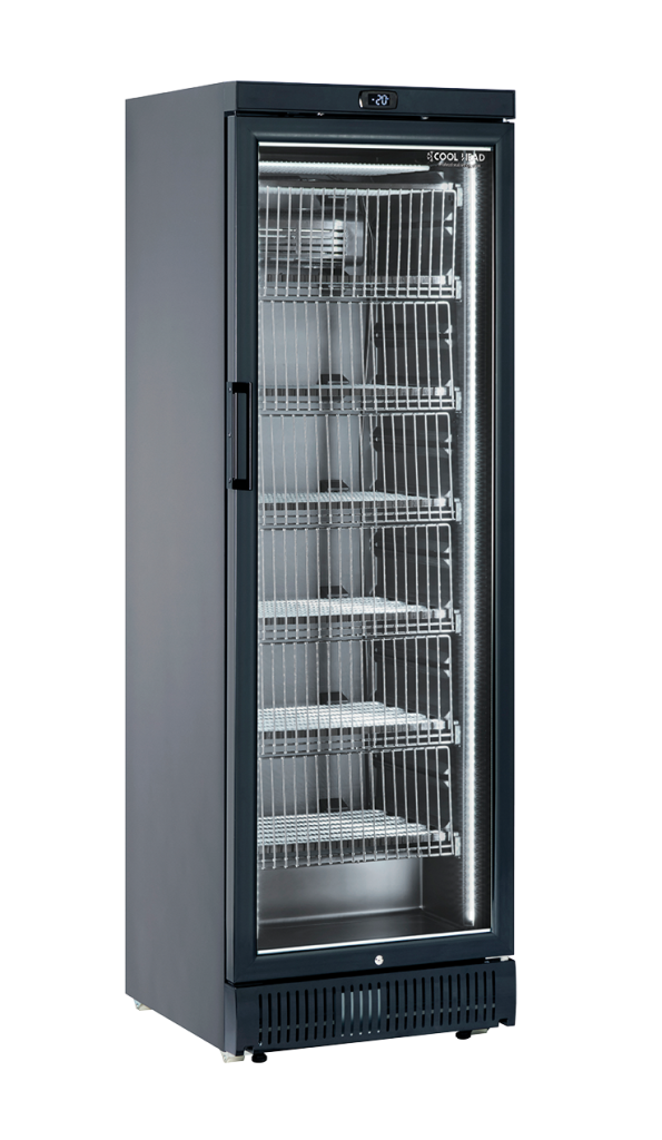 Equipaggiato con sistema di raffreddamento statico, due sportelli scorrevoli in vetro temperato di sicurezza, maniglia integrata nella cornice del vetro, serratura, luce LED orizzontale con interruttore indipendente e 4 cestelli, il modello CG 509A è anche facile da spostare grazie a 4 ruote piroettanti.