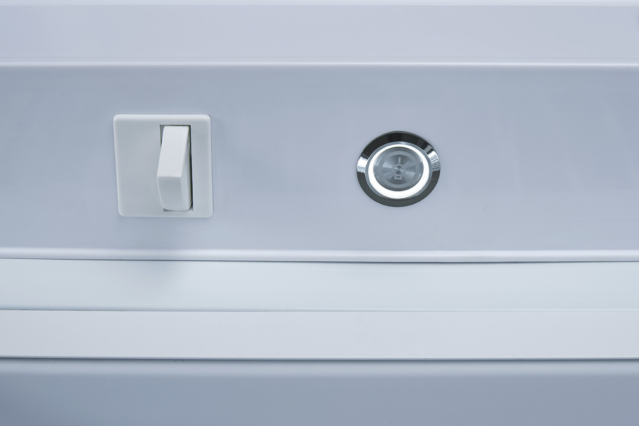 Esterno in lamiera verniciata bianca, interno in termoformato bianco