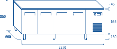Tavolo refrigerato dall’aspetto moderno, con nuovo design della porta, top con bordi arrotondati e display digitale. Il modello SR 4100 rappresenta la perfetta combinazione tra efficienza e affidabilità, con 600mm di profondità, 4 porte e 2 ripiani regolabili 325x410mm per ogni vano (cassettiere opzionabili). Il nostro banco frigo è stato progettato con attenzione all’ambiente e al risparmio energetico, equipaggiato con gas refrigerante eco-friendly R290, schiumatura isolante da 60 mm su ciascun lato, porte autochiudenti con spessore maggiorato e sagomatura interna per una migliore tenuta termica ed evitare sprechi di energia. Piedini regolabili in altezza (da 145 mm a 185 mm) contribuiscono a rendere questo prodotto un’attrezzatura ideale per la ristorazione professionale.