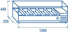 Con una larghezza di 1300mm, la VRX 13/33 è predisposta per contenere 5 vaschette GN1/4 (non incluse), ed è accessoriata con termostato digitale e piedini regolabili. Sono disponibili come optional piedini alti in acciaio inossidabile (140-210 mm).